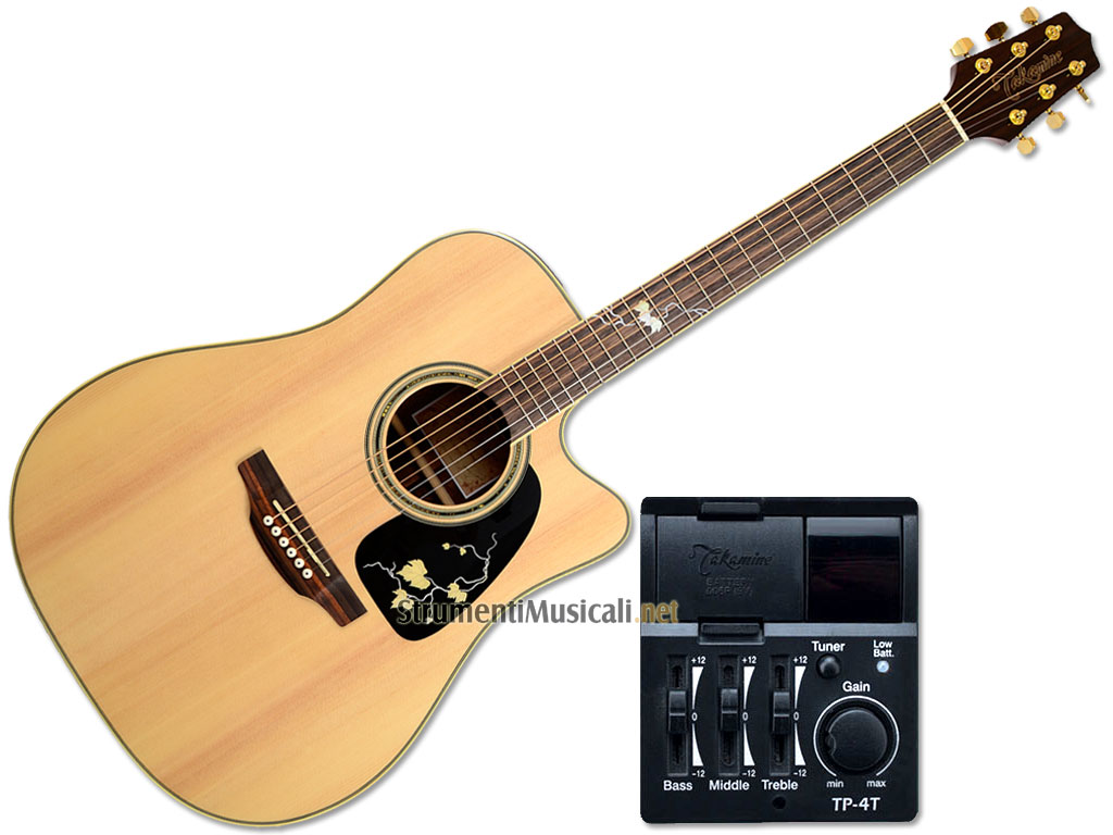 La EG50TH è la prima chitarra Limited Edition della Serie G in 50 anni di storia, costruita utilizzando lo stesso elegante tema con ramo di vite dei modelli T50TH e LTD2012. Questa dreadnought cutaway con finitura naturale ha caratteristiche premium tra cui: un top in Abete Sitka massello con controventatura X scalloped, fondo e fasce in mogano per un suono potente e Proiezione eccellente, manico in mogano con tastiera in palissandro, ponte in palissandro, rosetta e logo della paletta dorate, battipenna intarsiato, meccaniche dorate, e un pickup / sistema di preamp Takamine "state-of-the-art" per prestazioni acustiche da palco.