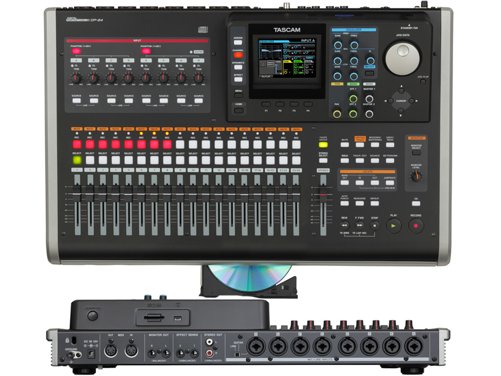 Il Tascam DP-24 è un registratore a 24 tracce su memoria a stato solido, dotato di un display LCD a colori ed una sezione channel strip per rendere le registrazioni più semplici possibile. Possono essere registrate fino ad otto tracce simultaneamente attraverso ingressi combo jack 6,3mm o XLR. Processori in ingresso come compressori e limiter sono disponibili in modalità registrazione così come la simulazione di amplificatori per chitarra ed altri muliteffetti. Una volta registrate le tracce possono essere visualizzate sull'ampio display e mixate con controlli dedicati, come diciannove faders lineari e dodici encoder di tipo channel strip. Sono disponibili 2 effetti dedicati al mixdown come chorus e riverbero, oltre ad una sezione di effetti per il mastering. Una volta terminata, la song può essere trasferita al computer via USB o masterizzata su CD utilizzando il drive integrato.