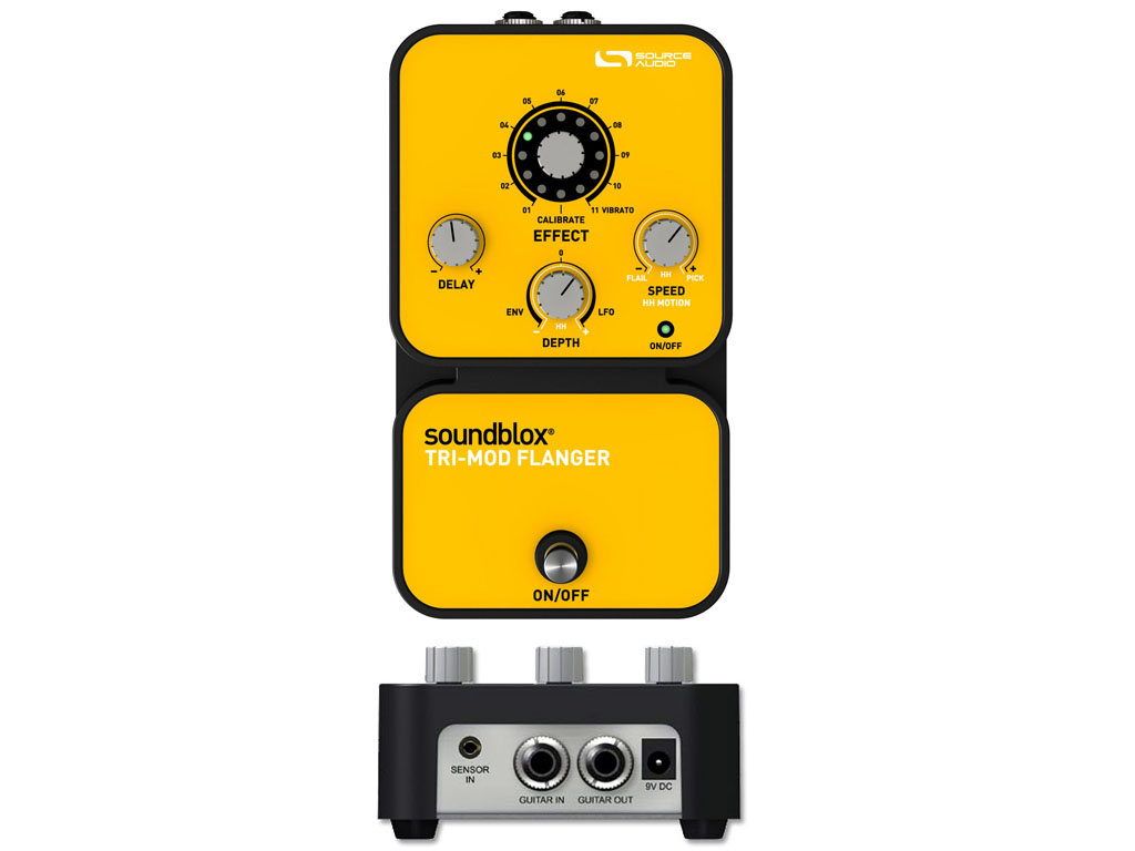 Basato sulla funzione Hot Hand Phaser/Flanger, il nuovo Soundblox Tri-Mod Flanger offre 11 diversi effetti con la stessa alta qualità di suono dei suoi predecessori. Il Tri-Mod Flanger è un'evoluzione compatta dell'originale sistema Hot Hand Phaser/Flanger. Incorpora 11 variazioni di effetti flanger che a loro volta possono essere modificati usando il sensore di movimento Hot Hand, con il quale si controlla l'LFO o l'Envelope Follower.
