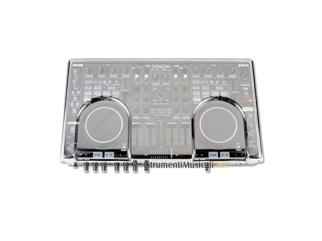 Copertura in plastica trasparente realizzata per il Denon MC6000. Il coperchio si adatta perfettamente al profilo del controller senza nasconderne il design.
