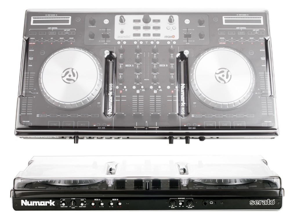 Copertura in plastica trasparente realizzata per il Numark NS6. Il coperchio si adatta perfettamente al profilo del controller senza nasconderne il design.