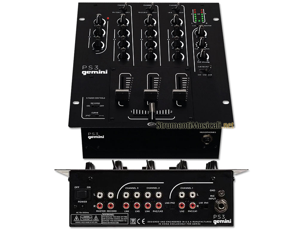 Questo mixer da 10", 3 canali è dotato del fluido cross fader Gemini Rail-Glide con pendenza regolabile, quindi è altrettanto efficace sia per mixare in modo uniforme da una fonte all'altra che per l'hard-cutting tra canali. Il mixer Gemini PS3 offre anche un controllo Gain ed un EQ a 3 bande rotativi per ogni canale, fornendo un controllo totale sul suono e consentendo di mixare le tracce in modo creativo e professionale. Una sezione Mic dedicata permette di regolare il tono e il volume del segnale vocale con un EQ 2-bande ed un controllo del Gain. Il PS3 offre una serie di ingressi e uscite flessibili per un totale praticità nei collegamenti, inclusi due ingressi RCA commutabili Phono/Line, insieme ad un jack 1/4" microfono e cuffie. L'uscita Master RCA permette anche di collegare il vostro amplificatore principale, mentre le prese di uscita REC possono essere usati per collegare un dispositivo di registrazione, dandovi la possibilità di registrare la vostra performance. Il PS3 offre la funzione Cue per l'anteprima delle le tracce. Con il Cue Volume del mixer è possibile regolare i livelli ascoltati in cuffia senza cambiare il mix complessivo, mentre un interruttore a levetta ed un Cue / PGM rotativo consente di assegnare il canale e regolare il mix in cuffia in base alle esigenze.