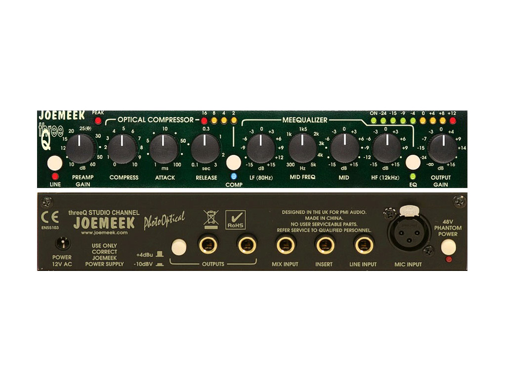 Il threeQ Joemeek è il connubio perfetto tra musica e computer. Racchiuso in un compatto chassis da 1/2 unità rack, utilizza per il Pre Microfonico la stessa componentistica Burr-Brown IC presente nei prodotti di fascia superiore, ed è dotato di una sezione EQ e di un compressore ottico. Gli ingressi sono concepiti per accettare ogni tipo di microfono o qualsiasi tipo di segnale lineare per connettere ogni tipo di strumento. JOEMEEK ThreeQ può considerarsi come l'insieme di tre componenti distinte: The Preamplifier, The JOEMEEK Optical Compressor, The Meequalizer, The Fader.