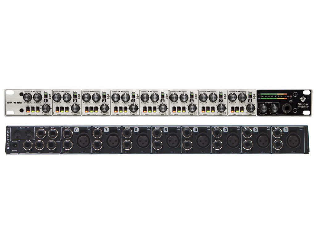 SP828 è un preamplificatore microfonico a 8 canali con la componentistica Burr Brown IC di ultima generazione. Lo strumento funge anche da mixer a 8 canali che consente di inviare simultaneamente all'uscita stereofonica in tempo reale tutti i microfoni connessi agli 8 ingressi. Tra le caratteristiche principali troviamo: