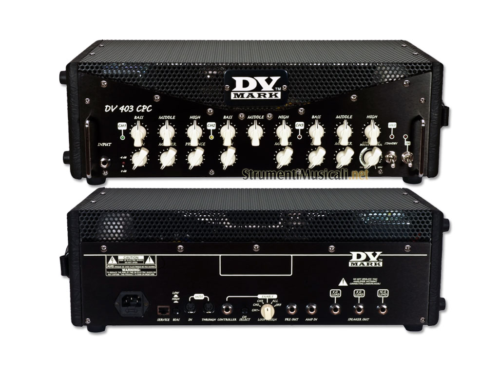 Il DV MARK 403 CPC è una testata a 3 canali 40W totalmente valvolare ispirata alla testata Little 40. Ora è possibile ottenere le stesse pure qualità timbriche con maggiore flessibilità, in una versione 3-Canali che include anche la tecnologia Continuous Power Control (CPC). Il DV 403 CPC offre un controllo completo di ogni canale e dà accesso a una serie di utili suoni, dal clean al crunch-rythm a toni lead high-gain. Grazie al brevetto DV Mark "Controllo Continuo della Potenza" (CPC) è possibile cambiare la potenza dell'amplificatore in modo incrementale, da 40W (classe A / B) fino a 1 W (classe A), in modo da poter ottenere il suono che si desidera al volume che serve. Come nelle più grandi testate multi-canale, la manopola Loop Assign sul pannello posteriore consente di scegliere a quale canale assegnare il loop effetti. È inoltre possibile applicare gli effetti a tutti i canali, o rimuoverli del tutto dal percorso del segnale. Il Pedal Controller memorizza automaticamente le configurazioni scelte e le archivia in memoria fino alla successiva accensione. Il DV 403 CPC esegue automaticamente Bias e Match delle valvole finali e, grazie alla Service Port, possono essere collegate all'interfaccia opzionale DVM Controller che mostra molti parametri interni dell'amplificatore, quali tensione e vita della valvola per mantenere l'amplificatore nel suo pieno potenziale. Inoltre, come nella nuova release del Triple 6, il DV 403 CPC dispone di porte MIDI per il collegamento a dispositivi MIDI esterni.