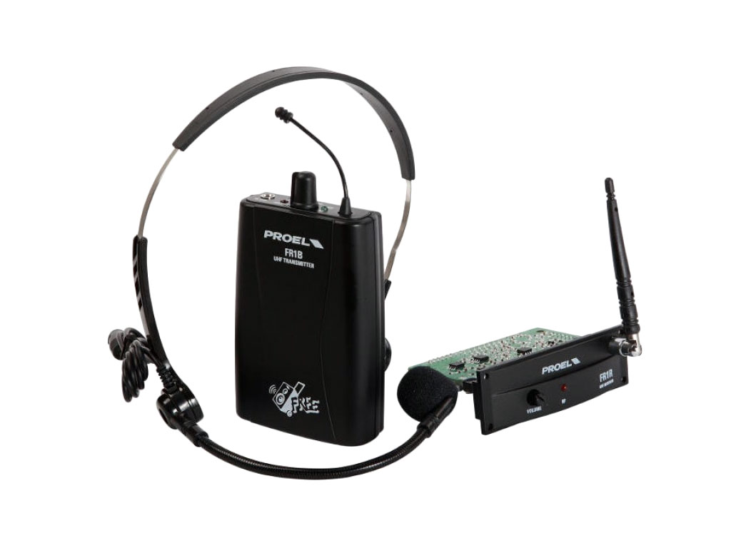 Modulo aggiuntivo per Proel Free6 e Free10 composto da un microfono ad archetto, un trasmettitore bodypack FR1B ed un ricevitore wireless FR1R.