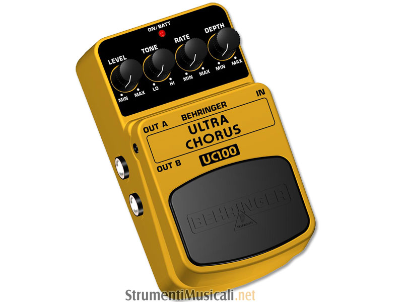 Get super thick chorus with unbelievable stereo effect! This BEHRINGER product has been designed to compete head to head with leading products on the market. * We've also thrown in dedicated Level, Tone, Rate and Depth controls for unproblematic sound shaping. A status LED for effect On/Off and battery check is included, and you can run your UC100 on a 9 V battery or a DC power supply (not included). For absolutely noise-free operation, a first-class electronic On/Off switch is integrated.