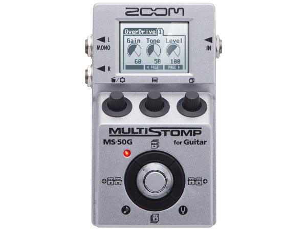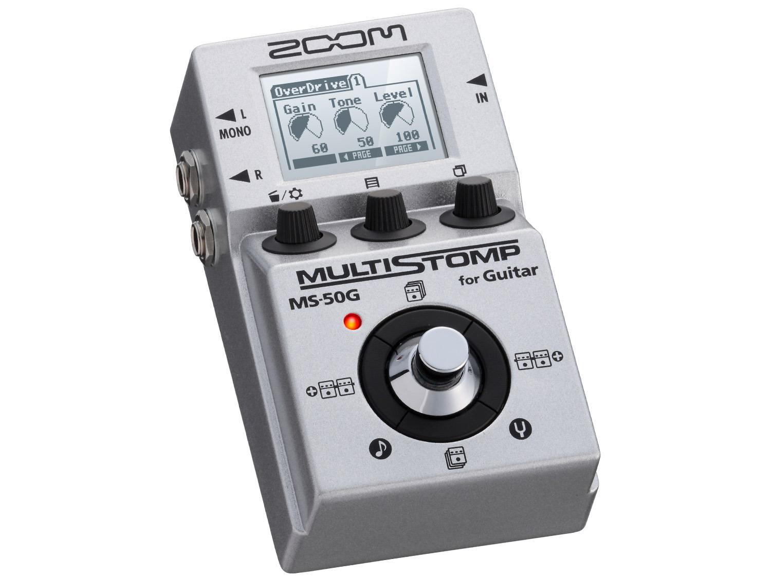 ZOOM MS-50G è un multieffetto digitale nel formato di un classico pedale analogico. Questo pedale contiene gli effetti dei famosi Zoom digitali, modelli fisici di amplificatori e cabinet. Si possono utilizzare contemporaneamente 6 effetti e, inoltre, una porta mini USB permette di utilizzare l'MS-50G come interfaccia audio compatta quando è collegato ad un computer.