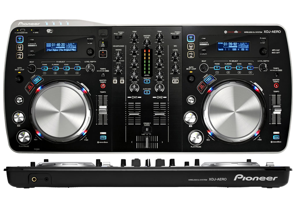 Pioneer XDJ-AERO è il primo sistema Wi-Fi all-in-one per DJ e lettore nativo rekordbox. E' infatti in assoluto il primo prodotto sul mercato che consente di caricare musica in modalità wireless da smartphone, tablet, laptop e PC, eliminando il fastidio delle configurazioni. Vera unità multifunzione, è utilizzabile con la nuova applicazione mobile di Pioneer e come mixer indipendente, nonché come controller MIDI e HID. XDJ-AERO crea la sua rete Wi-Fi privata e consente ai DJ di collegare fino a 4 dispositivi wireless contemporaneamente. Con XDJ-AERO, primo lettore nativo del software di gestione musicale rekordbox, i DJ potranno creare e modificare le playlist al volo, visualizzare le griglie dei beat, analizzare i BPM e caricare forme d'onda durante i set. XDJ-AERO include tutte le funzioni più apprezzate dai DJ: banche di campioni, filtri Sound Colour e sincronizzazione rekordbox dei beat quantizzati. Funge anche da interfaccia audio a 24 bit, controller MIDI per Traktor e controller HID per il software Virtual DJ.
