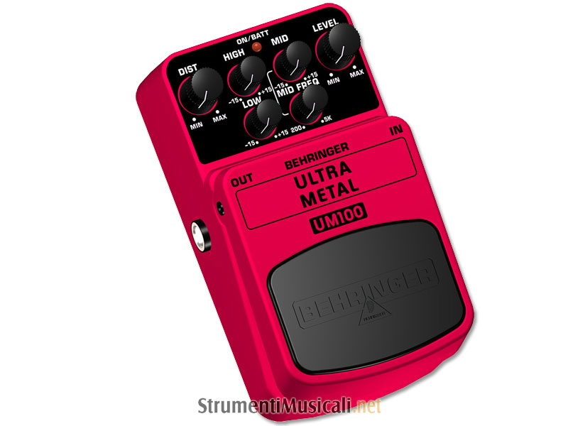 Take off with the most extreme and sought-after hard rock or heavy metal distortion around. This BEHRINGER product has been designed to compete head to head with leading products on the market. * Multi-gain circuitry lends your sound super thick, tube-like distortion plus endless sustain. There are dedicated Distortion, 3-band EQ and Level controls for effortless sound shaping. We've included a status LED for effect On/Off and battery check, and you can run your UM100 on a 9 V battery or a DC power supply (not included). For absolutely noise-free operation, a first-class electronic On/Off switch is integrated. Take distortion to the next level!