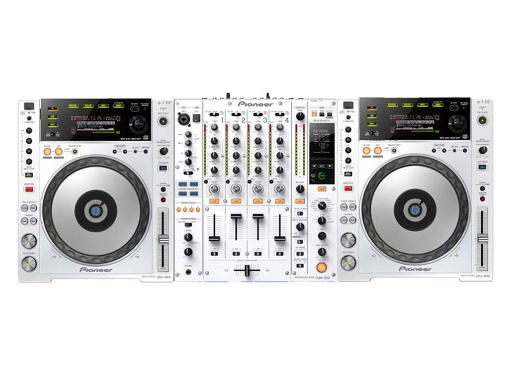 DJ Set composto da due multiplayer Pioneer CDJ-850-W ed un mixer Pioner DJM-850-W.