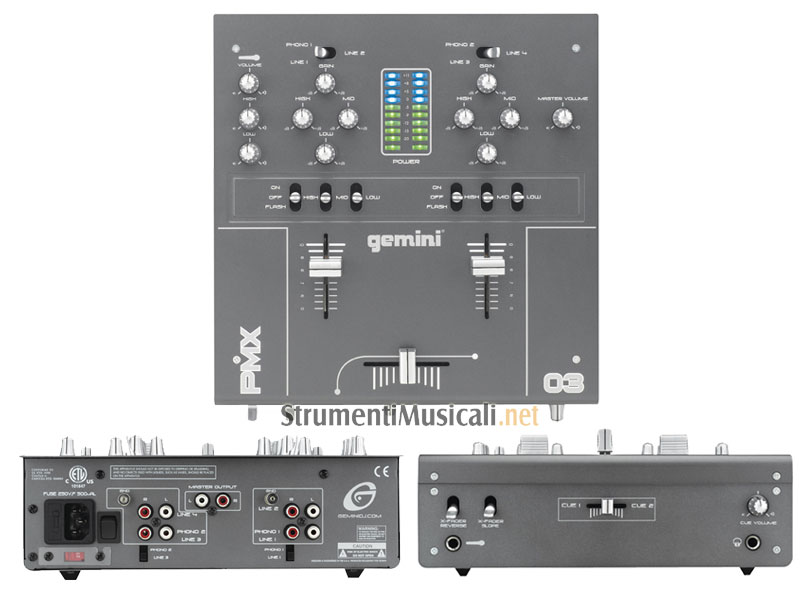 • 2 canali con 2 phono + 4 line con alti, medi, bassi e gain separati su ogni canale