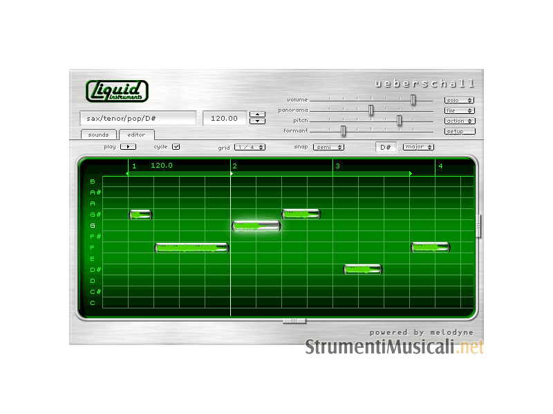 Stanchi di essere limitati quando usate linee e frasi musicali campionate? Ecco qualcosa di nuovo e eccitante: la Liquid Instrument Series della Ueberschall, in stretta cooperazione con Celemony (Melodyne) ha sviluppato questo nuovo strumento che presenta un modo completamente nuovo di controllare il materiale campionato. Fate suonare la frase campionata che avete scelto come volete!