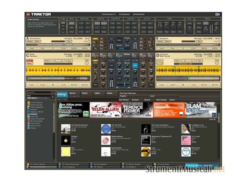 TRAKTOR DJ Studio 3 è dotato di accesso diretto a Beatport Online Music Store, permettendovi di navigare all'interno del suo immenso catalogo, effettuare un preascolto, acquistare nuove tracce e scaricarle direttamente all'interno della vostra libreria. E tutto senza lasciare mai il browser interno di TRAKTOR DJ Studio 3