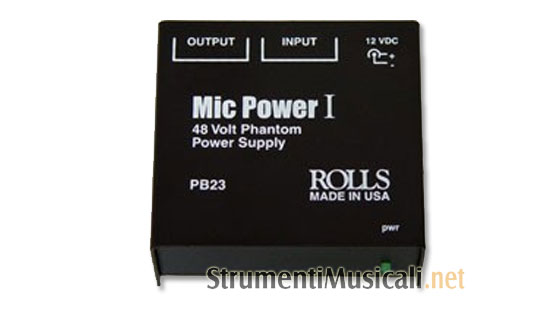 Dispositivo per fornire alimentazione phantom a 48VDC a 1 microfono, dotato di In e Out XLR, alimentazione con adattatore di rete incluso.