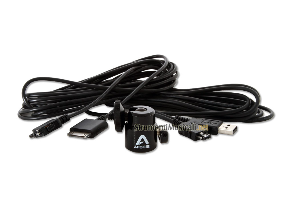 Kit Apogee composto da cavo iOS, cavo USB e adattatore per microfono.