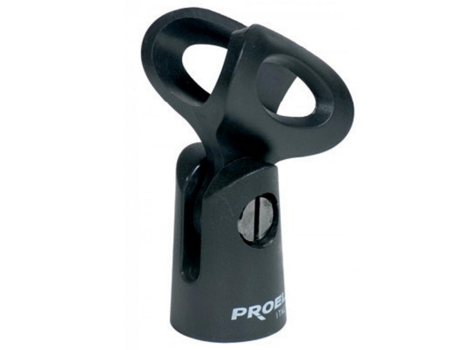 Supporto piccolo in ABS per microfono. Il diametro dei microfoni compatibili è compreso tra 22mm e 27mm.