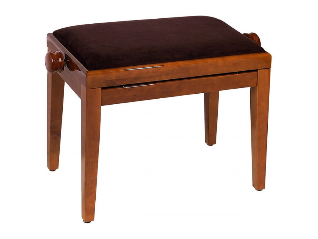 Panchetta professionale regolabile per piano ed organo, seduta imbottita con rivestimento in velluto, meccanica in acciaio zincato, comode manopole per la regolazione dell'altezza.