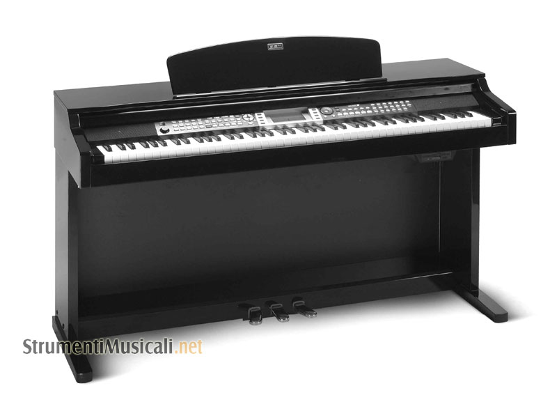 Ideale per i musicisti principianti, per gli studenti alle prime armi, o per tutti coloro che desiderano semplicemente divertirsi facendo musica, il nuovo GEM PS1600 è lo strumento "entry-level" perfetto, che combina suoni e accompagnamenti automatici eccellenti, semplicità d'uso e funzioni efficaci, ad un prezzo imbattibile. PS1600 è il nuovo modello di Style Piano GEM, realizzato appositamente per coloro che vogliono avere in casa uno strumento di qualità ma semplice e immediato, adatto ad ogni occasione: dallo studio alle serate musicali da passare in compagnia. Dotato degli elementi e delle funzioni necessarie per creare musica da subito, PS1600 mette a disposizione un completo assortimento di suoni e accompagnamenti utilizzabili in qualsiasi genere musicale. Sono inclusi 178 suoni di ottima qualità che comprendono i set di strumenti più utilizzati nella musica moderna o tradizionale; il pannello di controllo permette la selezione diretta dei suoni che si utilizzano maggiormente, grazie ad un tastierino sempre a portata di mano e subito accessibile anche durante l'esecuzione. È possibile arricchire ulteriormente i suoni grazie al processore d'effetti interno, che permette la selezione di diverse tipologie di Riverbero e Chorus e dei rispettivi livelli. La sezione Arranger offre 96 accompagnamenti automatici di grande effetto, programmati in modo accurato e completi di diversi arrangiamenti. Dotati di 5 tracce strumentali (Drums, Bass, Acc.1, Acc.2, Acc.3), ogni Style offre due variazioni, una più semplice e l'altra con un arrangiamento strumentale più complesso, permettendo l'esecuzione delle parti introduttive (Intro) e finali (Ending), e di interventi di batteria (Fill-in). Anche gli Styles sono selezionabili singolarmente grazie ad un tastierino dedicato. Il pannello di controllo di PS1600 è molto chiaro, completo di tutti i comandi necessari a gestire l'intero sistema, senza costringere a dovere navigare all'interno di numerosi menu software. Il display multi-funzione retroilluminato fornisce sempre le informazioni che servono nell'ambito della funzione selezionata, risultando sempre ben visibile grazie ad una gradevole colorazione azzurra; inoltre, consente la visualizzazione delle note suonate sulla tastiera, sia sulla parte sinistra che sulla parte destra, divenendo un ottimo supporto didattico per l'apprendimento delle note musicali.PS1600 è uno strumento polifonico a 64 note e multitimbrico a 16 parti, compatibile con lo standard General MIDI, garantendo la totale compatibilità con il formato Standard MIDI File. La tastiera a 88 tasti con hammer action è caratterizzata da un'ottima pesatura, del tutto simile a quella dei pianoforti acustici, capace di restituire un tocco realistico e la sensazione di suonare un vero pianoforte, grazie anche a tre diverse curve di dinamica selezionabili. Sono disponibili diverse modalità d'esecuzione: "Full" - un suono esteso su tutta la tastiera; "Layer" - due suoni sovrapposti; "Dual" - uno o due suoni sulla parte destra e uno sulla parte sinistra. Servendosi della sezione Arranger per avere a disposizione una vasta gamma di arrangiamenti già pronti, il pratico sequencer interno a 5 tracce permette di eseguire e registrare le proprie composizioni, che successivamente possono essere memorizzate direttamente su floppy disk. All'interno sono presenti 50 brani dimostrativi con funzione Melody Off, per disattivare la linea melodica, e diverse demo songs dedicate agli Styles. Il floppy disk drive da 3.5'' HD di PS1600 è utile per l'archiviazione dei dati e per caricare ed eseguire le basi musicali e i MIDI file, eseguendo anche la lettura diretta da disco; in questo modo non è necessario attendere il caricamento dei dati da disco: è sufficiente selezionare il brano musicale presente nel floppy disk e premere Play, senza nessun tempo d'attesa. Oltre ad essere uno strumento completo e semplice da utilizzare, PS1600 è dotato di un mobile disponibile nelle finiture nero-lucido e palissandro, munito di copritastiera scorrevole e capace di integrarsi con ogni ambiente grazie ad un'estetica sobria ma raffinata.