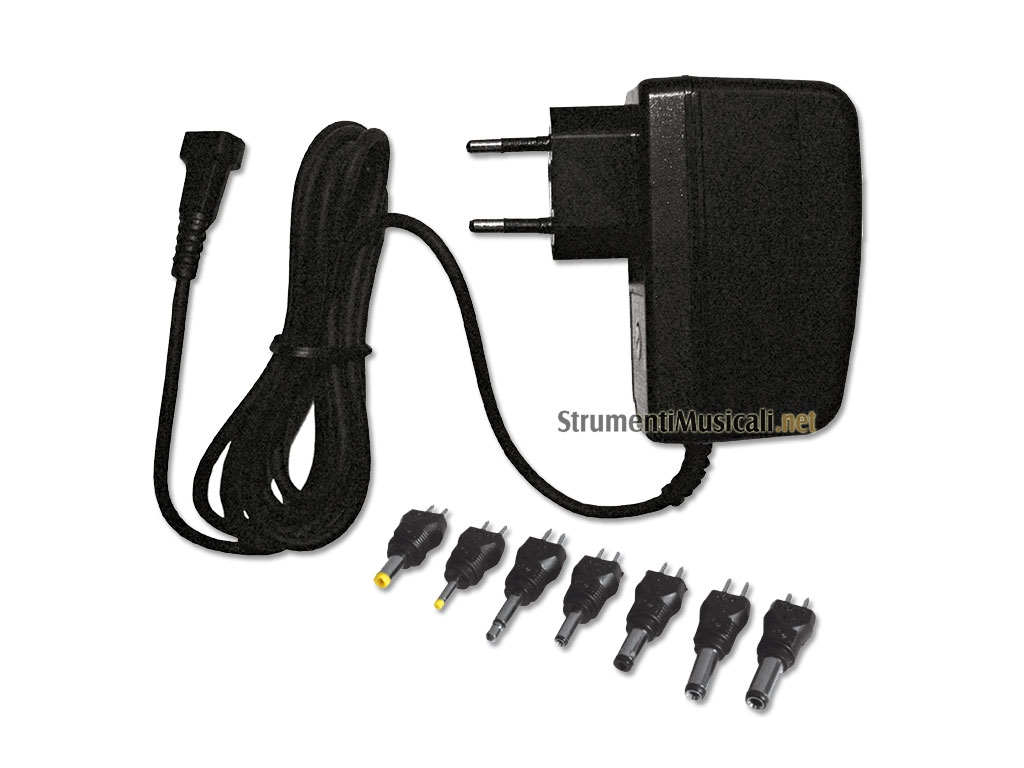 Permette la scelta fra le seguenti tensioni stabilizzate: 3-4,5Volt/1600mA; 6Volt/1500mA; 7,5Volt/1200mA; 9Volt/1000mA; 12Vot/800mA. Corredato da 7 spinotti intercambiabili per ogni tipi di alimentazione. Il sistema "Switching" autoregola tensioni di rete da 100 a 240Volt, senza necessità di commutazione.