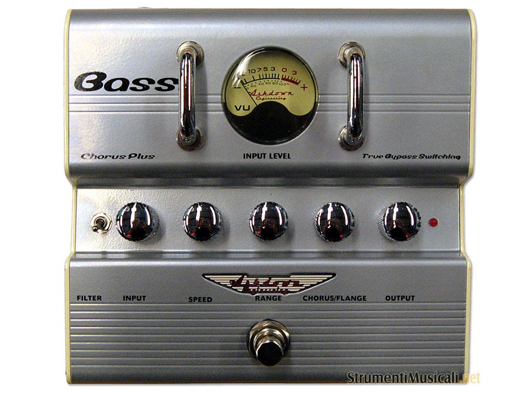 Il Chorus Ashdown Bass Plus è una unità specifica per basso che fornisce una vasta gamma di effetti Chorus, Flanger e Filtri di Risonanza. Ashdown ha combinato la regolazione di Velocità e Profondità in un unico controllo che diminuisce automaticamente la profondità quando la velocità aumenta. Per dare un certo grado di regolazione del pitch è stato introdotto il controllo Range. Con la manopola Chorus/Flange è possibile passare da Chorus a Flanging fornendo un controllo sul grado di Flanging introdotto nell'effetto Chorus. Il sistema automatico Sweep dell'effetto filtro può anche essere disabilitato dall'interruttore Filtro. In questa modalità il controllo Speed fornisce un mezzo per scorrere manualmente attraverso il range del filtro per gli effetti di risonanza. E' importante impostare il livello di ingresso corretto sul VU-Meter in modo da assicurarsi che l'unità funzioni in modo ottimale.