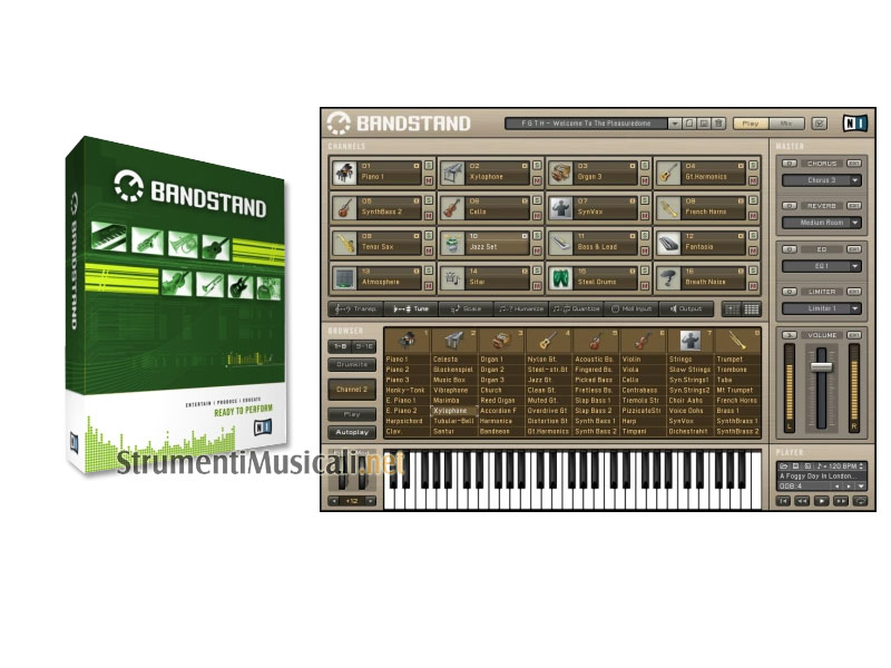BANDSTAND combina un motore audio allo stato dell'arte con oltre 2 Gb di campionamenti professionali e 128 strumenti. Bassi profondi, batterie aggressive, chitarre brillanti, archi coinvolgenti, pianoforti naturali e molti altri suoni di altissima qualità formano una libreria senza confronti.