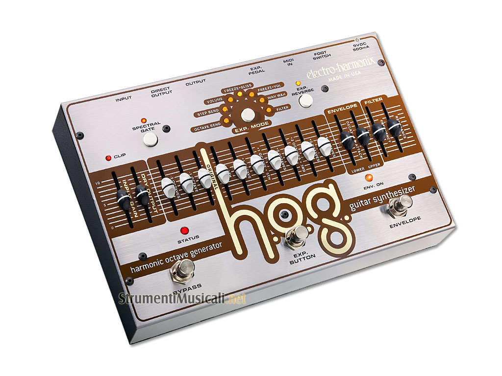 Il premiato HOG (Harmonic Octave Generator) è un sintetizzatore totalmente polifonico per chitarra che offre un controllo completo di un massimo di 10 intervalli di tonalità. Nessun glitch o pick-up speciali. Puoi generare sub-bassi estremi e potenti accordi multi-ottava. Converti la tua 6 corde in una 12 corde, crea un realistico organo B3. Incredibile sulla chitarra, funziona bene con qualsiasi strumento.