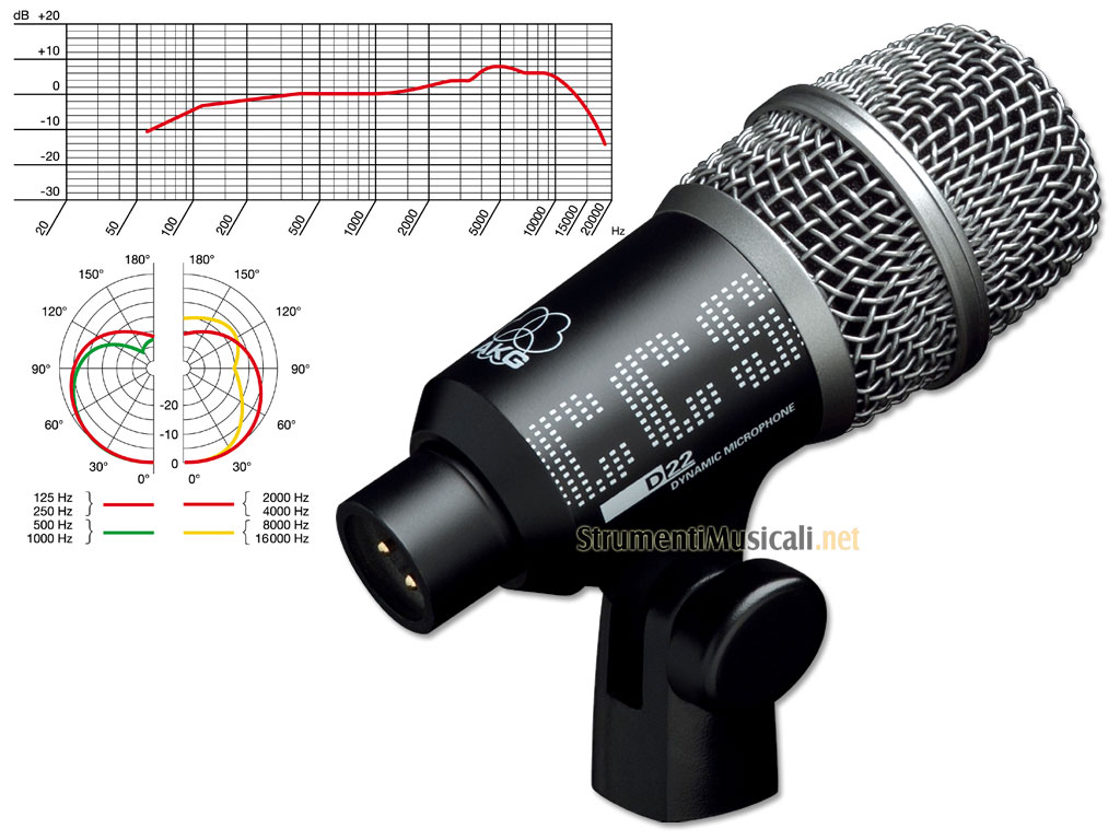 Il microfono AKG D 22 con la sua robusta costruzione in metallo è adatto alle difficoltà dell'uso live. Un supporto integrato per asta e una staffa di montaggio per tom lo rendono altamente versatile per l'uso con batterie, percussioni, strumenti a fiato e chitarre amplificate.