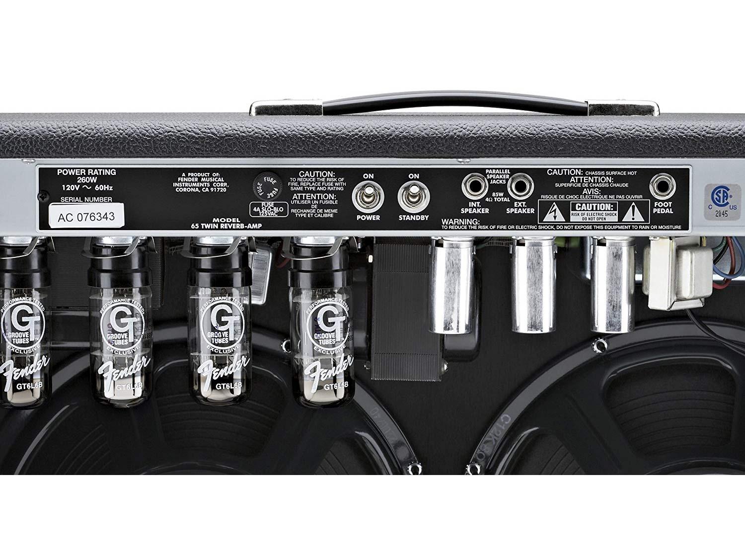Il FENDER '65 Twin Reverb è stato utilizzato in ogni contesto musicale dal giorno della sua presentazione fino ad oggi. Che suoniate rock, jazz, country, o qualunque altro genere, questo amplificatore sarà sempre perfetto. Basta aggiungere una Stratocaster e un pedalino distorsore. La riedizione Vintage Reissue del '65 Twin Reverb da 85 Watt (su 4 ohm) è dotata di 4 valvole finali 6L6 Groove Tube, 4 preamplificatrici 12AX7, 2 preamplificatrici 12AT7 , 2 coni da 12" 8 Ohm Jensen C-12K, 2 canali (normal e vibrato), riverbero e vibrato Fender, footswitch a due pulsanti per controllo di riverbero e vibrato, rivestimento in vinile nero e griglia argentata.