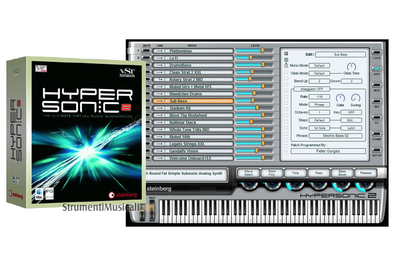 La possibilità di avere la potenza e la semplicità d'uso di workstation come il Korg Triton, il Roland JV5080, ecc. sembrava fin'ora soltanto un sogno irrealizzabile per i tantissimi musicisti e produttori che lavorano con il computer: ora questo sogno con Hypersonic 2 diventa realtà! Il nuovo VSTi Steinberg si integra perfettamente nei vostri sistemi di produzione musicale diventando adatto a molteplici usi: potrete usarlo come semplice strumento per comporre ed arrangiare, per la generazione di suoni di altissima qualità e come versatile workstation live.