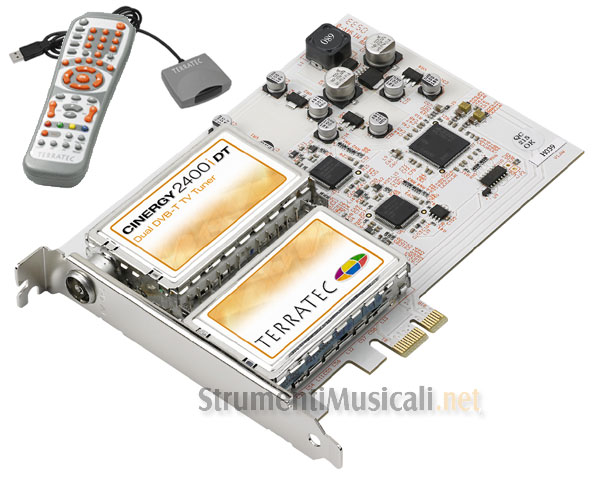 Terratec presenta una nuova scheda TV della serie Cinergy votata completamente al digitale terrestre che aggiunge notevoli possibilità operative grazie al doppio sintonizzatore integrato che rende possibile la ricezione di due stazioni indipendenti e ad esempio anche la registrazione di un programma mentre contemporaneamente se ne vede un altro. La nuova scheda Cinergy 2400i DT è dotata di interfaccia PCI-Express ed è pienamente compatibile con il sistema operativo Microsoft Windows XP Media Center Edition. La scheda permette la riproduzione anche di flussi audio multicanale Dolby Digital. Questa versione è fornita con il Software Power Cinema ed il telecomando in dotazione.
