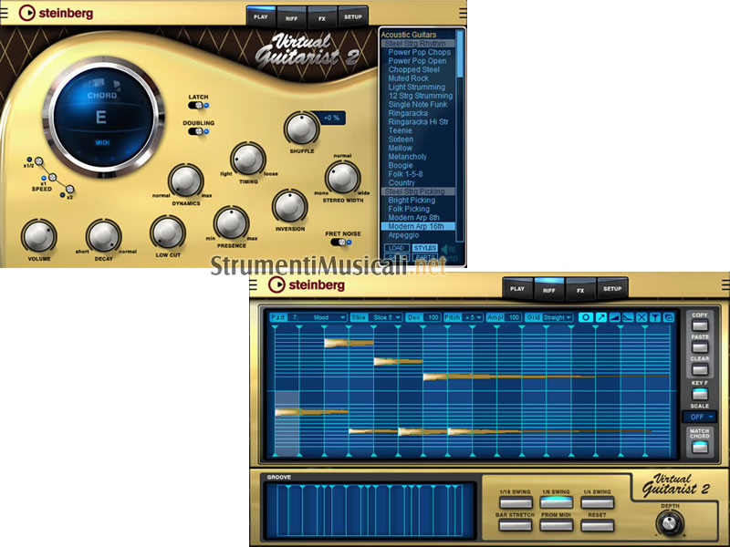 Il nuovo Part Editor consente un controllo totale sull'editing di ogni singola frase di Virtual Guitarist 2: ogni accordo è suddiviso in sezioni (slice) che possono essere modificati in qualunque modo. Ogni slice si può trasporre o spostare all'interno della parte per creare nuovi groove e la tecnologia GrooveMatch consente di adattare le linee di chitarra a ogni ritmica, per un abbinamento ideale con l'altro software Steinberg Groove Agent 2.
