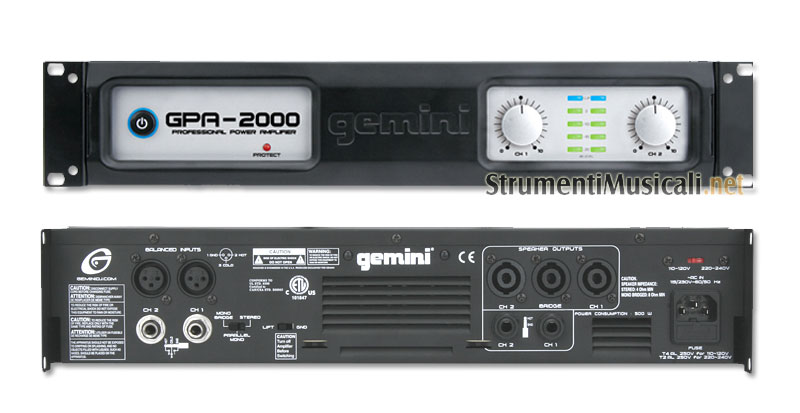 GEMINI GPA2000 Finale di potenza stereo 2 x 110 Watt Rms 4 Ohms