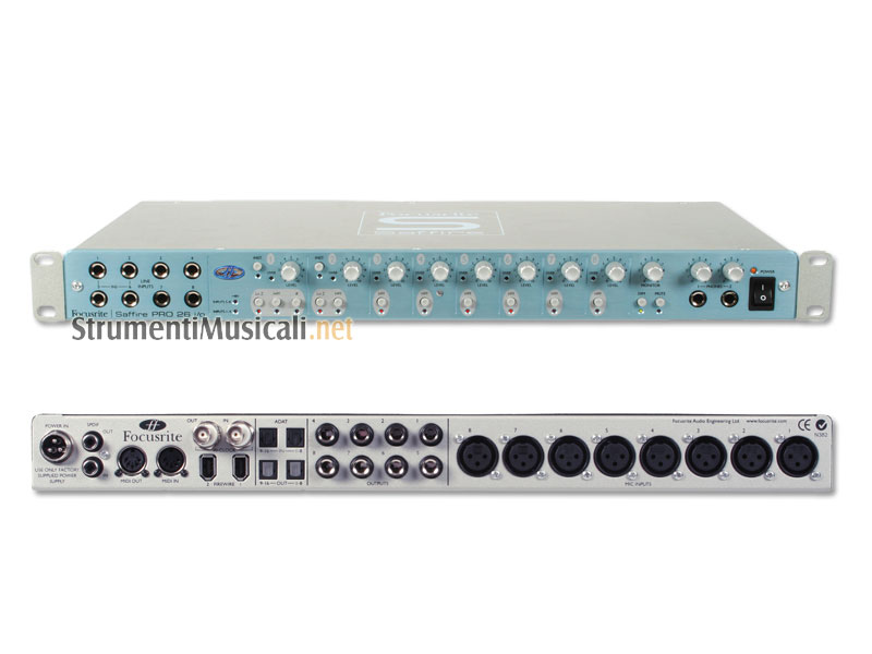 Saffire PRO 26 i/o is the ideal Firewire interface for music recording enthusiasts on a mobile multi-channel mission, providing more inputs and outputs with higher performance specs than any other interface in its class. Saffire PRO 26 i/o combines eight award-winning pre-amps with sixteen channels of ADAT, and two channels of SPDIF (up to 192kHz). Also employed are Focusrite's high performance 24-bit digital converters. Saffire PRO 26 i/o is much more than just a high performance breakout box; the Saffire PRO package includes Focusrite's highly acclaimed Saffire plug-in suite, comprising EQ, Compression, Amp Simulation and Reverb, in both VST and AU format. The hardware features 2 headphones outputs and a global monitor control with mute and dim options, as well as two 'super channels' featuring variable mic impedance and instrument input, instantly accessible on the front fascia. The SaffireControl PRO software features many of the attributes of the original SaffireControl software, ensuring intuitive control over monitoring and level.*
