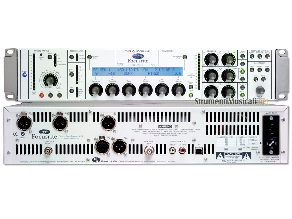 Il Liquid Channel trasporta la classica elaborazione front-end nell'era digitale, eliminando la necessità di patch senza fine e l'aggiunta di fluidità e affidabilità per l'ambiente studio. Molto semplicemente, il Liquid Channel è ogni combinazione di preamplificatore microfonico e di compressore della storia, all'interno di un singolo dispositivo 2U 192kHz. Questo risultato è ottenuto attraverso un unico processo in due parti. In primo luogo è applicato l'uso di tecniche di convoluzione dinamica, utilizzando fulminei chip SHARC applicando risposte "unico livello-dipendenti" all'impulso di ogni campione audio. Tuttavia, mentre questo è più che sufficiente per ri-sintetizzare in modo identico il comportamento sonoro del compressore, replicando con precisione ogni sottile sfumatura, il preamplificatore deve corrispondere fisicamente al modo in cui l'unità classica interagisce con un dato microfono. La soluzione Liquid Channel risiede nel suo grande front-end analogico. Un preamplificatore con la capacità di cambiare la sua impedenza e variare il percorso del suo segnale replicando perfettamente le caratteristiche di interazione tra l'originale, pur rimanendo completamente trasparente. Il Liquid Channel può quindi riprodurre con precisione il suono di qualsiasi pre microfonico e compressore classico. Con i controlli del pannello frontale interamente digitali, tutti i parametri possono essere salvati in una delle 99 memorie utente. E' disponibile anche un EQ digitale nuovo di zecca, fornendo un canale Channel Strip veramente completo e 'liquido'. Una connessione USB sul pannello posteriore si collega a un software che consente l'archiviazione di entrambe le emulazioni e le memorie utente eccedenti, oltre a fornire un funzionamento remoto dell'unità stessa. Il Liquid Channel è completo di quaranta pre microfonici e quaranta compressori classici, ma è espandibile all'infinito, dal momento che la porta USB facilita anche il download di ulteriori emulazioni. Infine, per tenere conto delle variazioni nella quantità di distorsione armonica di secondo ordine (in genere percepita come calore) da un preamplificatore a quella successivo, è stato incluso un quadrante per il controllo di questo valore.