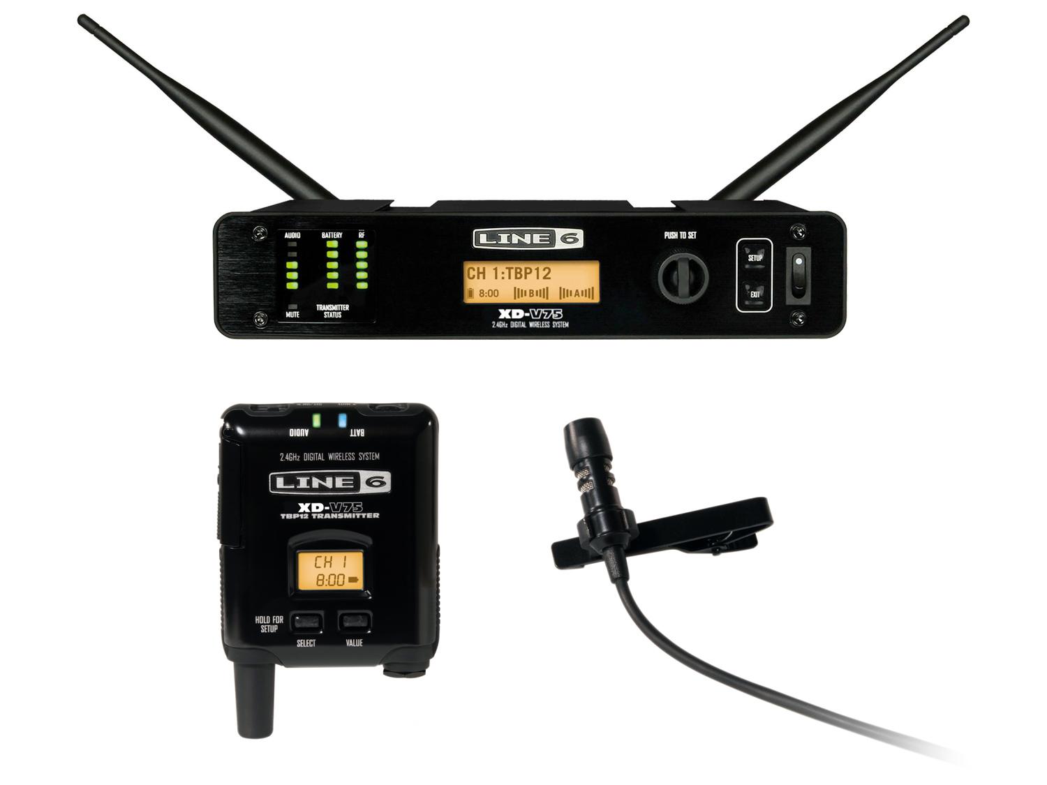 L'XD-V75L di Line 6 stabilisce un nuovo standard nei sistemi lavalier senza fili per artisti e presentatori. Con una spettacolare qualità audio, i sistemi XD-V75L offrono l'esclusiva tecnologia di modellazione EQ filter assieme ad una piattaforma digitale wireless comprovata di4a generazione. Con 14 canali a 24 bit, 10Hz-20kHz, prestazioni senza compander, l'XD-V75L fornisce un'eccezionale nitidezza audio full-range ed un funzionamento license-free in tutto il mondo. L'XD-V75L offre la possibilità di scegliere tra sei modelli vocali e tre modelli di filtro EQ strumento, che consentono di ottimizzare il suono del sistema alla tua voce o allo strumento, e fornire performance con la massima nitidezza e impatto. Utilizzando il pulsante di selezione sul trasmettitore da tasca, si possono facilmente ascoltare e scegliere i modelli di filtro EQ disponibili. Il lavalier premium incluso è stato progettato per il suono più nitido ed il più basso rumore di maneggiamento possibili.