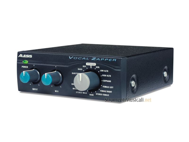 Il Vocal Zapper di Alesis è un processore stereo ultracompatto per la attenuazione della parte vocale da qualsiasi sorgente sonora (CD, MP3, ...). Questo eccezionale processore vi permettere di scegliere tra 16 diversi algoritmi che permettono di scegliere una riduzione ottimale a seconda del brano. Ci sono due ingressi Jack da 1/4” e 2 uscite Jack da 1/4” con conversione a 24-bit e frequenza di campionamento a 48kHz.