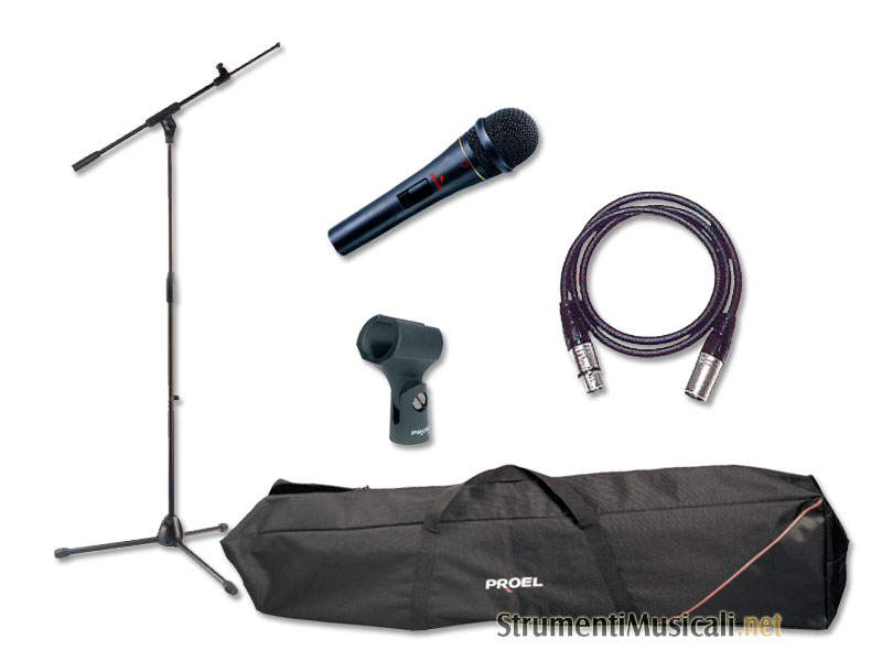 ASTA GIRAFFA PROFESSIONALE + MICROFONO DINAMICO IPERCARDIOIDE + SUPPORTO PER MICROFONO + CAVO XLR + BORSA PER IL TRASPORTO