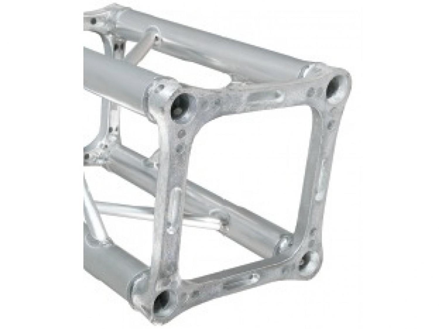 La struttura è in alluminio estruso AlMgSil avente denominazione EN AW 6082 T6 HB 90 (UNI 9006) con tubi correnti da 50mm di diametro e 2mm di spessore. Le diagonali interne sono di alluminio estruso P-Al-Mg-S con denominazione 6060 HB 60 (UNI 9006), con diametro da 20mm e spessore 2mm. I terminali (piastra) sono realizzati con una lega di alluminio GLASI 10 Cul. La soluzione della greca continua rende la struttura gradevole e ne consente l'impiego anche in ambienti di piccole dimensioni. La truss a sezione quadro da 29cm presenta due tipi di connessione: una rapida con ogive, spine e molle (PLQSET02PLUS), l'altra con viti e dadi (PLQSET01M10).