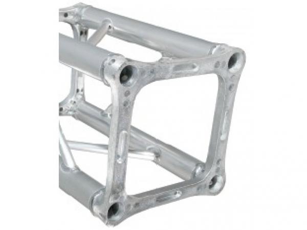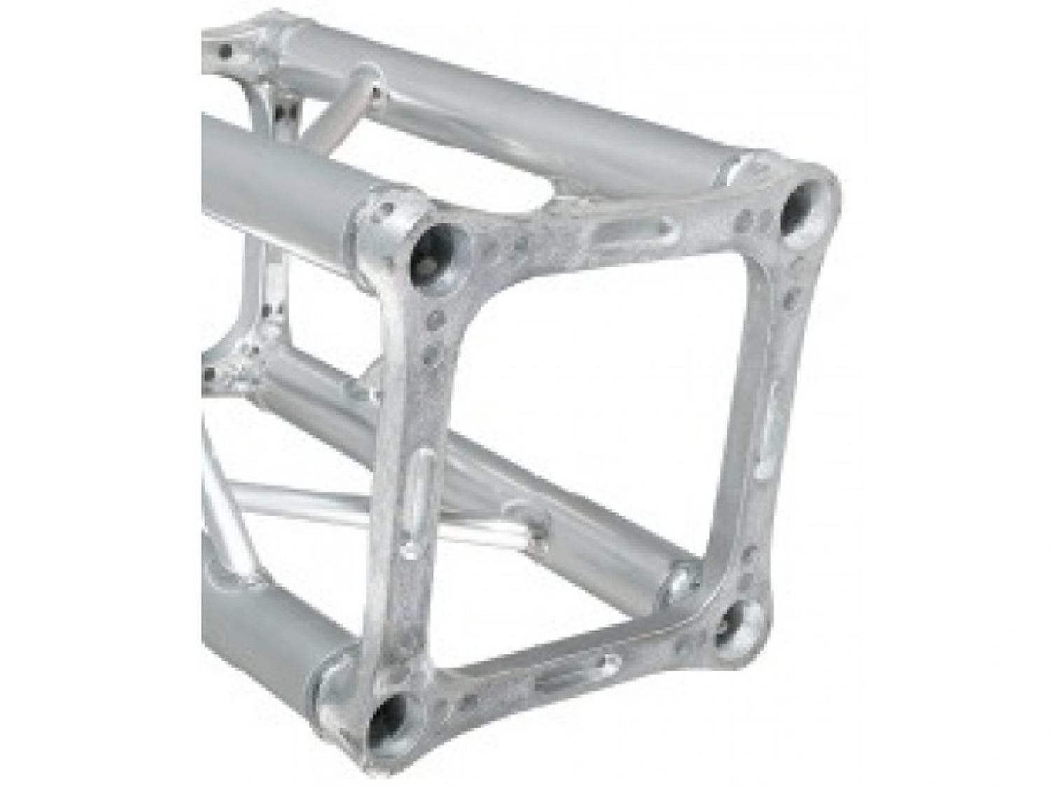 La struttura è in alluminio estruso AlMgSil avente denominazione EN AW 6082 T6 HB 90 (UNI 9006) con tubi correnti da 50mm di diametro e 2mm di spessore. Le diagonali interne sono di alluminio estruso P-Al-Mg-S con denominazione 6060 HB 60 (UNI 9006), con diametro da 20mm e spessore 2mm. I terminali (piastra) sono realizzati con una lega di alluminio GLASI 10 Cul. La soluzione della greca continua rende la struttura gradevole e ne consente l'impiego anche in ambienti di piccole dimensioni. La truss a sezione quadro da 29cm presenta due tipi di connessione: una rapida con ogive, spine e molle (PLQSET02PLUS), l'altra con viti e dadi (PLQSET01M10).