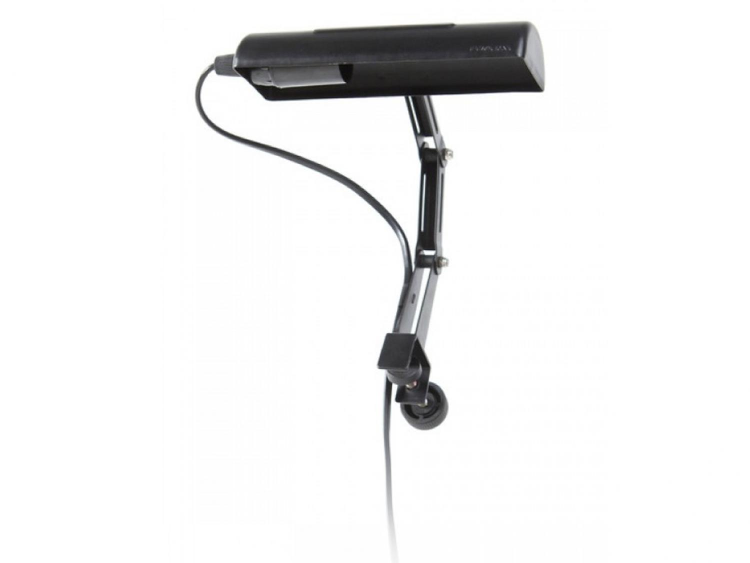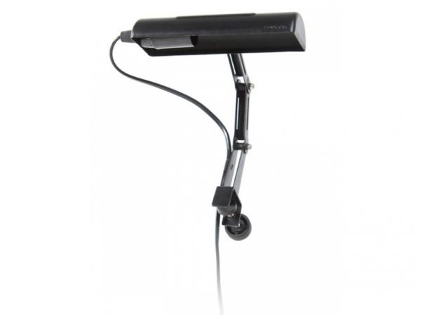 Portalampada singolo agevolmente agganciabile ad ogni leggìo grazie al dispositivo a morsetto regolabile. Dotato di cavo da 2 metri con interruttore e spina Europea a 2 poli.