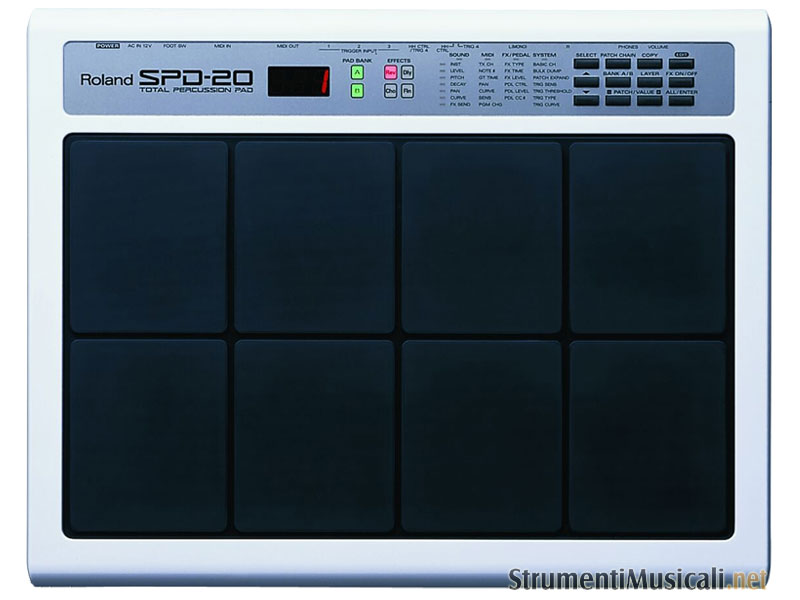 L'SPD-20 è una unità di percussioni elettroniche con pad e modulo sonoro che incorpora una incredibile quantità di suoni nuovi e realistici set di batteria acustica, di suoni etnici, di percussioni elettroniche classiche e di effetti particolari. Tutti questi suoni sono programmabili ed assegnabili a uno degli 8 pads sensibili alla dinamica. L'SPD-20 è lo strumento ideale per Il musicista "live" che vorrebbe integrare nel suo kit qualche sonorità elettronica ma senza rinunciare al suo strumento acustico, per il musicista MIDI che vorrebbe dare un tocco più naturale alle parti di batteria che programma, magari usando uno strumento che gli consenta di suonare come un batterista in tempo reale, per il batterista che vorrebbe esercitarsi più spesso, anche con poco spazio a disposizione, e magari in cuffia