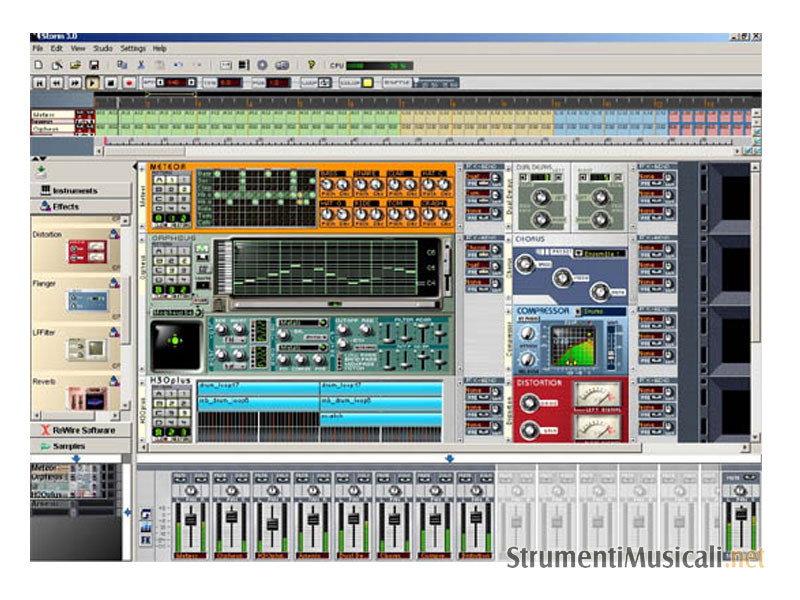 Storm Music Studio 3 è un software per la creazione musicale che emula in modo molto accurato l'outboard con i vari dispositivi hardware per la creazione e la modulazione del suono di uno studio di registrazione. In questo ambiente virtuale trovano spazio sintetizzatori, drum machines, sample player, effetti, mixer, sequencer, piatti da dj e molto altro ancora, con una qualità che non ha nulla da invidiare all'hardware emulato, ma con una spesa decisamente inferiore. Con Storm 3 potete definire un setup personalizzato per il vostro studio, scegliendo gli strumenti virtuali da utilizzare, tramite un semplice ed immediato drag & drop. Niente di più semplice quindi, anche grazie ad un'interfaccia utente particolarmente immediata ed intuitiva dove ogni parametro può essere automatizzato. Si possono anche effettuare delle 'session' interattive con altri utenti tramite la sezione Hall che fornisce una serie di strumenti per la creazione di musica in condivisione on-line. La sezione Hall implementa il file sharing e il downloading, chat room, newswire, consigli e tutorials. Un'altra importantissima feature di Storm 3 è il Composition Wizard che aiuta l'utente nell'apprendimento del software con un approccio orientato all'arrangiamento ed alla produzione musicale in base a generi e stili, particolarmente utile ed importante anche per chi non è propriamente alle prime armi. Storm 3, rispetto alle precedenti versioni, permette anche di avere tutta la gestione del progetto musicale su un'unica finestra, con anche un nuovissimo Piano Roll dove si possono modificare pattern, controllare le curve e le sequenze MIDI ed intervenire su ogni aspetto del brano. Si possono anche importare e modificare MIDI file e configurare il software per la sincronizzazione sia come master che come slave con dispositivi hardware esterni. Un nuovissimo sequencer audio/MIDI consente un controllo totale su ogni dettagli delle vostre registrazioni audio o MIDI basate su pattern. Avrete a disposizione anche un sintetizzatore MIDI con standard General MIDI di qualità assoluta. Probabilmente il modo migliore per rendervi conto del livello di questo software è ascoltare qualcuno dei brani creati con Storm 3 cliccando sul link del produttore Arturia, stenterete a credere che tutto sia stato creato in dominio digitale con un unico software!
