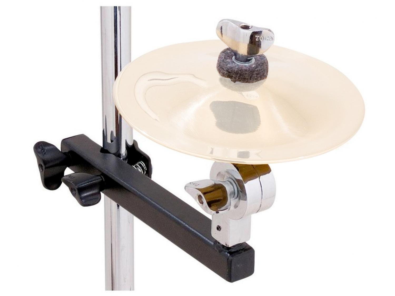 Un morsetto in acciaio innovativo che si trasforma da supporto per piatti a rack per percussioni. Equipaggiato di staffa con morsetto a U che può essere collegato a qualsiasi asta per piatti.