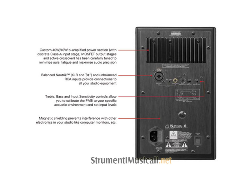 E-MU's new PM5 Precision Monitor has been designed from the ground up to deliver hyper-accurate audio in a compact design. From its custom audiophile amplifiers (Class-A input and MOSFET output stages) to its world-class drivers and premium cabinet, the PM5 offers superior imaging and hi-end transient detail with linear frequency response rivaling compact nearfield monitors over twice the price. Professional features like overload protection, balanced/unbalanced inputs, and treble, bass and input sensitivity controls ensure that the PM5 will seamlessly integrate into any studio environment.