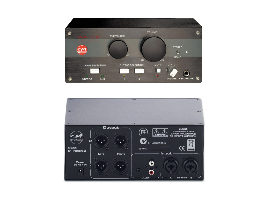 Una soluzione economica, di alta qualità, per risolvere il problema della mancanza di un mixer in molte stazioni audio e video digitali domestiche. M-Patch 2 è l'ideale per controllare il volume di segnali audio direttamente dalla scrivania e può essere impiegata per distribuire i segnali audio in presentazioni pubbliche e nelle installazioni multicanale. Un tipico utilizzo di questo dispositivo è il controllo del volume dell'audio proveniente dall'interfaccia del PC. Infatti la maggior parte di queste schede non è dotata di un controllo di volume fisico e l'utente è ogni volta costretto a regolare il volume direttamente dal suo sistema di monitor audio - nel quale però i controlli del volume sono di solito posizionati sul pannello posteriore. M-Patch 2 è essenzialmente un attenuatore/selettore audio stereo multicanale ed un amplificatore per cuffia. Fa uso di circuiti passivi (eccetto la sezione amplificatore per cuffia) di alta qualità, ed è stata appositamente progettata per utenti che desiderano operare senza un mixer esterno o attenuatori di volume che degradano il segnale. In un box di dimensioni 1/2 unità rack, M-Patch 2 mette a disposizione due controlli rotativi per regolare con precisione il livello di due distinti ingressi stereofonici, 1 regolatore volume cuffia, più alcuni selettori con i quali scegliere la sorgente, la coppia di speaker e le modalità mono/stereo e mute. M-Patch 2 non aggiunge guadagno al segnale, semplicemente lo attenua in modo trasparente. L'alimentazione è richiesta solo se si desidera utilizzare l'amplificatore per cuffia. Connettori di ingresso e uscita bilanciati e sbilanciati, in formato XLR, jack da 6,3 - 3,5mm e RCA soddisfano le diverse esigenze di connettività.