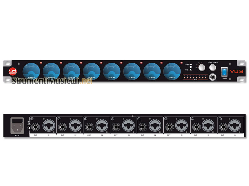 The VU8 is a multi-channel passive VU meter and headphone monitoring system designed for use as an all-purpose audio level indicator. Whether for use in broadcast, studio, live, or just about any other audio production situation, the VU8 gives you simple and immediate multi-channel visual metering. The units metering channels are completely passive and allow for 'Peak' or 'Average' metering configuration. This ensures not only that your signals remain clean and unaltered by any possible interference, but that your signal levels can be visually represented precisely as intended. A handy selectable headphone monitor output is also provided for handy immediate monitoring of any of the available eight (8) channels. Visually striking, the VU8 looks great and adds a professional look to any audio installation.