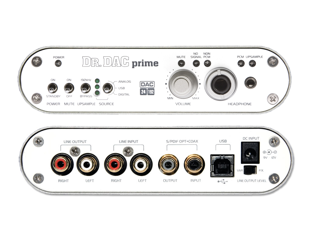 Dr. DAC Prime ha semplicemente tutto quello che serve per ascoltare la musica digitale con audio purissimo sia in viaggio che a casa. Dr. DAC Prime opera a 24bit/192kHz ed è dotata di un ingresso ottico (tramite l'adattatore miniJack-Toslink incluso), di un ingresso coassiale S/PDIF e anche di una Interfaccia Audio USB completa (24bit/96kHz) per un trasferimento audio perfetto. Opzionalmente il segnale in ingresso può essere sovracampionato a 192kHz usando un convertitore di frequenza di campionamento TI SRC4382. Il Segnale di uscita analogico viene generato da un DAC TI PCM1796 con una gamma dinamica di 123dB, una uscita differenziale con 3 amplificatori operazionali LME49860NA (8 pin) opportunamente posizionati sulle prese. L'amplificatore per cuffie è dotato di connettori 1/8" e 1/4". Il volume dell'uscita di linea può essere regolato o fissato per inviare la massima gamma dinamica. Dr. DAC Prime fornisce ingressi di linea (AKM AK5386 ADC con 110dB), ingresso ottico e coassiale S / PDIF, consentendo di registrare i segnali con un'eccellente qualità audio.