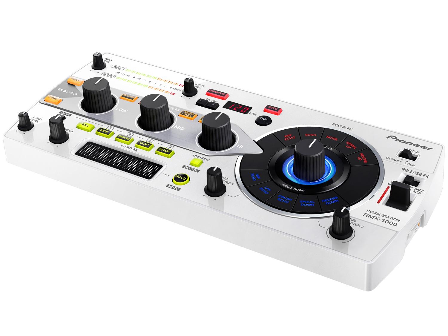 La portentosa remix station RMX-1000 è una vera rivoluzione per effettori e campionatori. L'RMX-1000 è un sistema 'tre in uno' che integra software di editing, hardware dalle innovative prestazioni e plug-in VST/AU. La remix station RMX-1000 vanta tutte le funzionalità degli effetti da studio e delle beatbox, con il valore aggiunto della fisicità dell'apparecchiatura pro-DJ. Le interfacce intuitive, mutuate dai mixer e dagli effettori di punta di Pioneer – come l'Isolator FX del DJM-2000, l'X-Pad del DJM-900nexus e il concatenamento di effetti multipli dell'EFX-1000 – sono state potenziate e integrate in una sola unità.