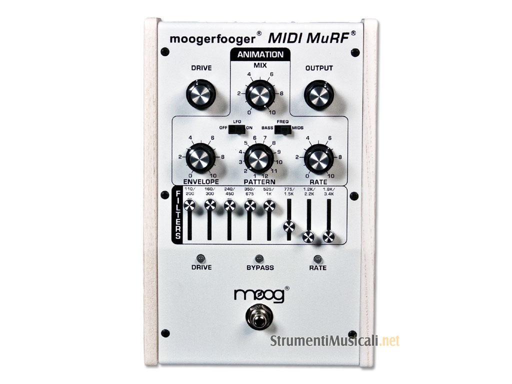 L'evoluzione del MuRF continua con il MF-105M MIDI MuRF che combina i classici MuRF e Bass MuRF di Moog Music in un unico potente Moogerfooger. Grazie alle sue bande dei filtri calde, risonanti e analogiche al 100%, avrete a portata di mano morphing timbrico tremolante e effetto “stutter” ritmico, così come profondi groove di basso e, come tutti i Moogerfooger, una solida struttura per sopportare un'intensa attività live e di studio. MF-105M MIDI MuRF sfoggia anche un'ampia implementazione MIDI. Si possono creare sequenze di filtro a tempo grazie al MIDI Clock Sync, cambiare i pattern utilizzando MIDI Program Change, controllare i valori dei potenziometri sul pannello frontale con messaggi MIDI CC e suonare i filtri in tempo reale utilizzando i comandi MIDI Nota On